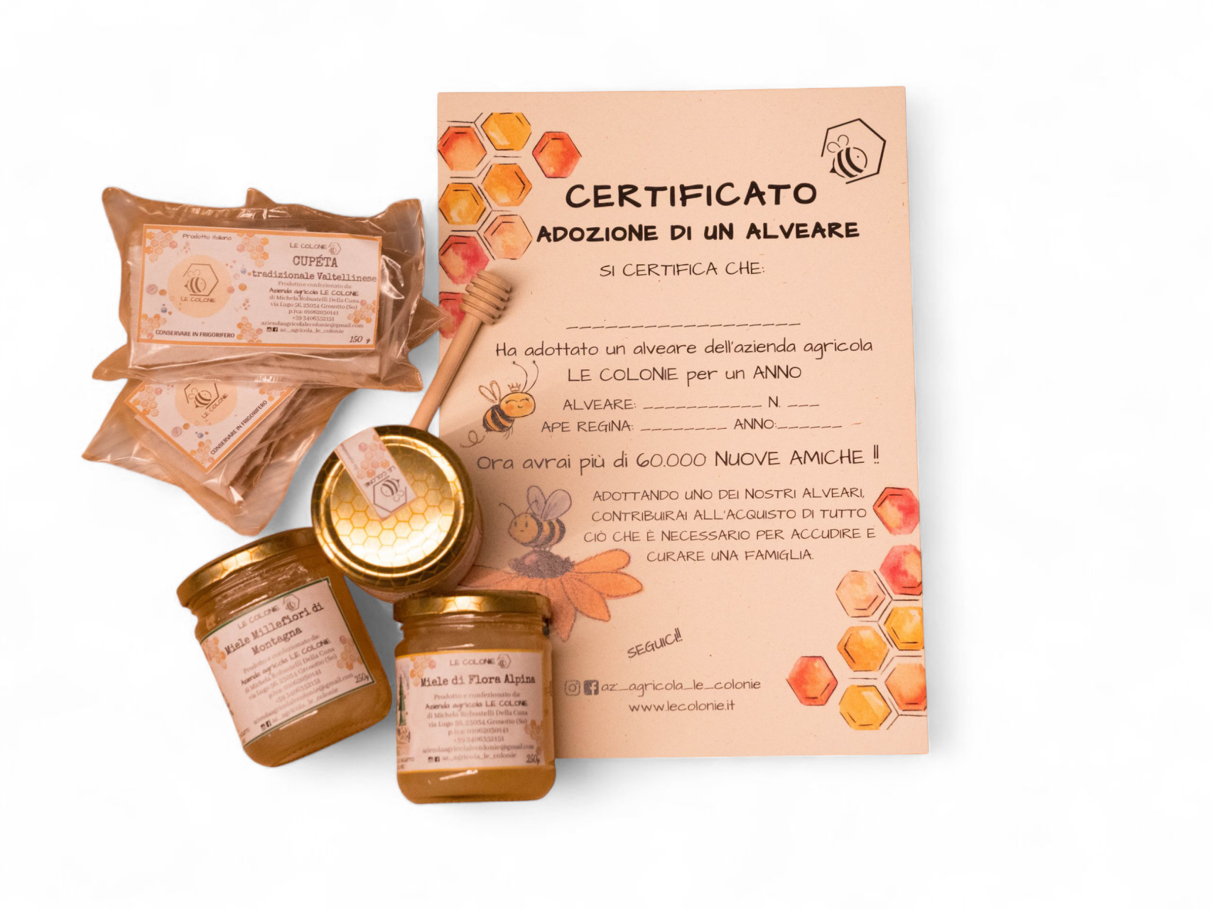 Un' idea originale e sostenibile: adotta un alveare e regala la vita! ogni alveare ospita più di 60.000 api, che in un anno impollinano oltre 36 milioni di fiori. Più api, più fiori, più bellezza per tutti.